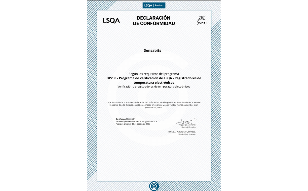Sensabits certifica sus equipos de cadena de frío con LSQA-LATU